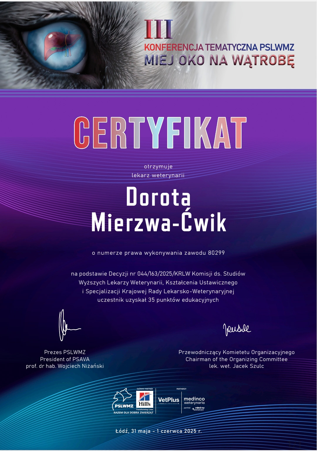 W dniach 31 maja–1 czerwca 2025 w DoubleTree by Hilton w Łodzi odbyła się III Tematyczna Konferencja PSLWMZ poświęcona chorobom wątroby i okulistyce małych zwierząt.